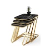 Parlak Ahşap Mermer Desenli 3 Lü Zigon Sehpa Metal Gold Ayaklı Pars
