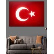 Parlak Ay Yıldız Detaylı Türk Bayrağı Dekoratif Kanvas - Mdf Ahşap Tablo