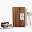 Pasifichome Huga Sürgülü Gardırop Ceviz 120Cm / 2 Kapaklı Çekmeceli Dolap