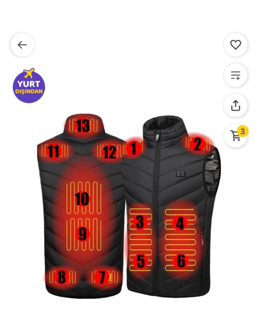 Pasifix 13 Alan Çift Kontrol Siyah Usb Elektrikli Isıtma Fanila Akıllı Sıcak Yelek 001