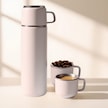 Paslanmaz Çelik 3 Bardaklı Matara Seti-500 Ml Krem