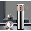 Paslanmaz Çelik 3 Bardaklı Vakumlu Vacuum Termos Set 500 Ml, 12 Saate Kadar Isı Koruma Termos Gümüş