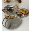 Paslanmaz Çelik Kelebek Aksesuarlı Oval Model 6 Adet Sunum Tepsisi Gümüş
