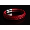 Paslanmaz Çelik Manyetik Klipsli Kırmızı Örgülü Deri Erkek Bileklik Gümüş - Kırmızı