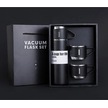 Paslanmaz Çelik Vacuum Termos 3 Bardaklı Siyah 500ml Termos Seti Siyah