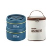 Paslanmaz Çelik Yalıtımlı Yemek Saklama Kabı, Mikrodalga Uyumlu, Taşıma Çantası İle Restoran Ve Paket Servisler İçin Pratik Katmanlı Yemek Kapları Seti MAvi
