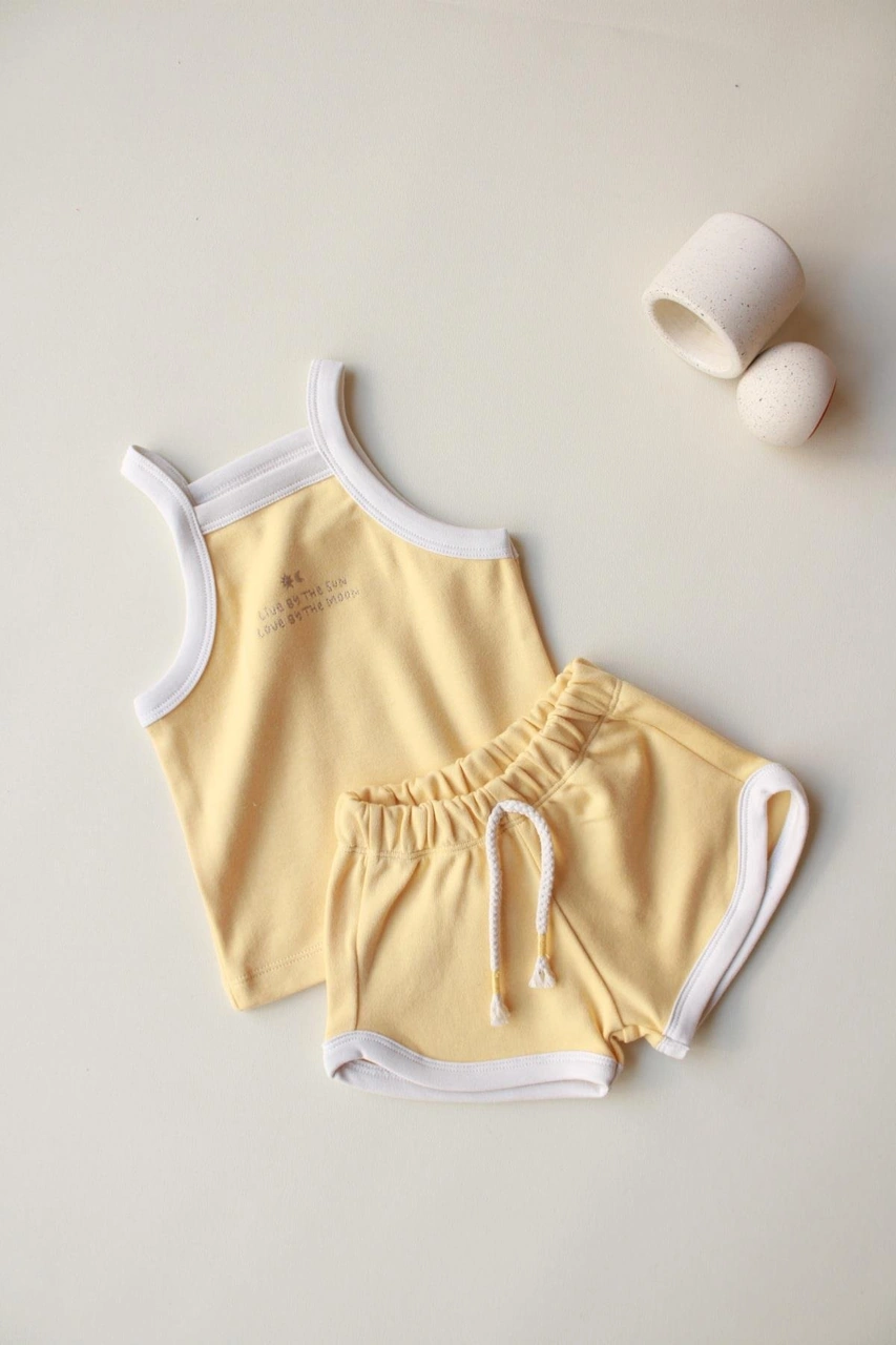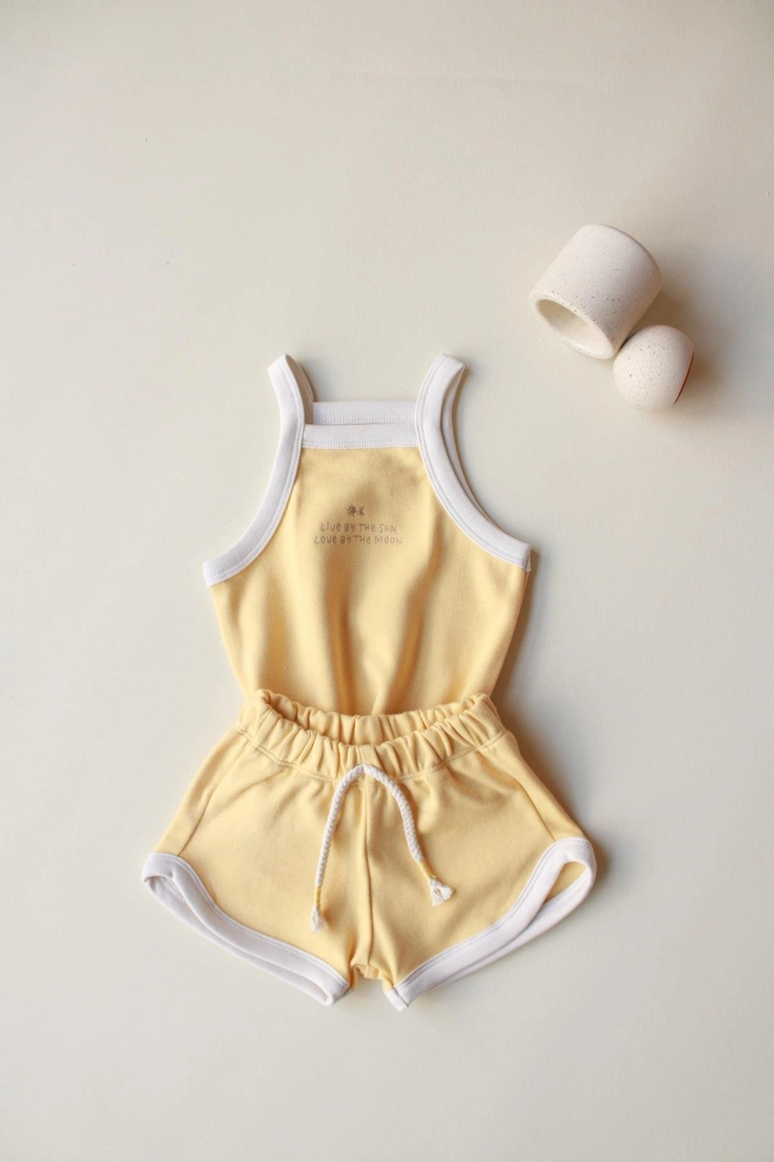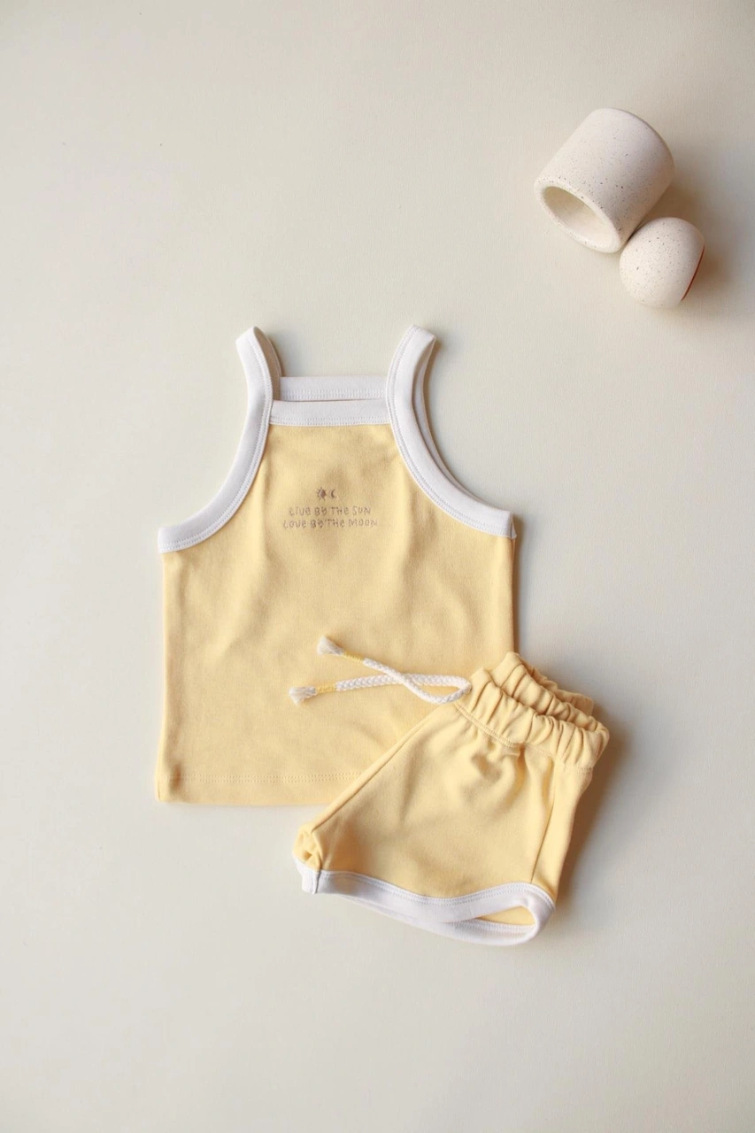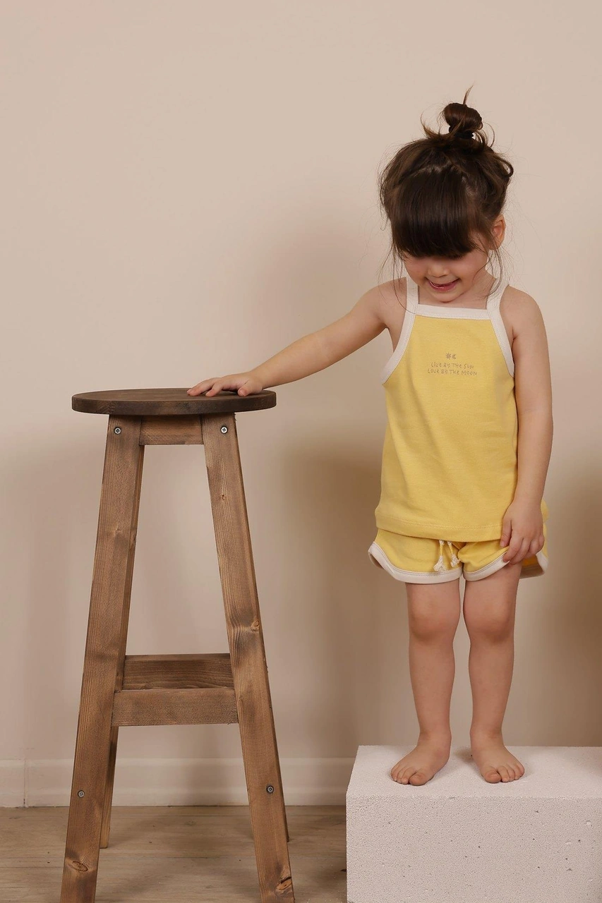 Pastel Sarı Askılı Şortlu Takım Pastel Sarı