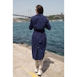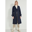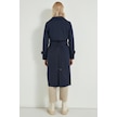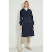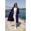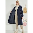 Pastelastore %100 Pamuk Gabardin Uzun 110cm Astarlı Kemerli Kadın Trençkot 1111 Lacivert