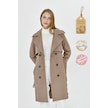 Pastelastore Esnek Pamuk Gabardin Midi 95cm Astarsız Kadın Trençkot 1118 Vizon