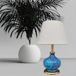 Patara Abajur Gold Kaplamalı Mavi Çini Krem Şapka Mavi