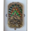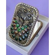 Ctbx Vintage Sap Peacock Tarak İki Parçalı Taşınabilir Makyaj Aynası Bakır
