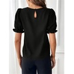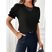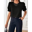 Pazarella Kadın Kısa Kollu Bisiklet Yaka Kolları Gipeli Ithal Krep Bluz Siyah