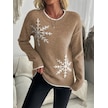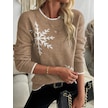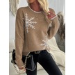 Pazarella Kadın Uzun Kollu Bisiklet Yaka Kar Tane Desenli Triko Bluz Kahve