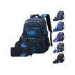 Pazly Öğrencilik İçin 3'lü Set: Sırt Çantası + Yemek + Kalem Kutusu, Mavi Pırlanta Desenli, 32x20x43 Cm, Siyah/yıldızlı Gökyüzü/mavi Çok Renkli