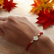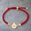 Pelin İsmine Özel Nar Motifli İpek Örgülü 14 Ayar Altın Plakalı Hediye Bileklik-323isim-kırmızı Altın