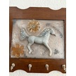Pelince - Gümüş At Figürlü - Epoksi Ahşap Anahtar Askılığı Tek Ürün - Ebat : 24 X 29 Cm Ahşap