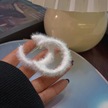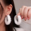 Peluş Hoop Küpeler Kadınlar İçin Kürklü Beyaz Yuvarlak Hoop Beyaz