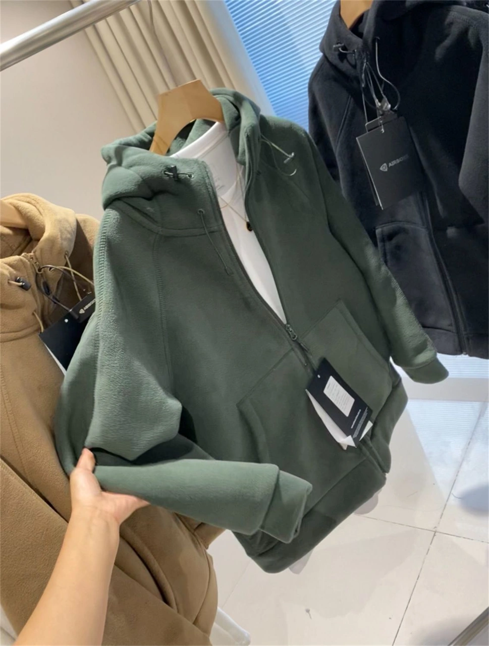Peluş Sıcak Çift Katmanlı Kalın Günlük Kapüşonlu Ceket Koyu Yeşil