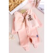 Peluş Yelekli Pamuklu İkili Kız Bebek Tulum Set Somon