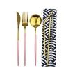 Pembe Altın Seyahat Yemek Takımı Paslanmaz Çelik Taşınabilir Çatal Bıçak Kaşık Çatal Saman Kumaş Paketi Yemek Takımı Piknik Için Pembe & Altın