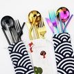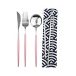 Pembe Altın Seyahat Yemek Takımı Paslanmaz Çelik Taşınabilir Çatal Bıçak Kaşık Çatal Saman Kumaş Paketi Yemek Takımı Piknik Için Pembe & Gümüş