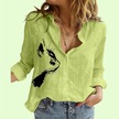 Pembe Bayanlar Rahat Kedi Baskı Bluzlar Kadın Moda Yaka Yaka Hırka Gömlek Ince Pamuk Keten Üst Pembe