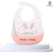 Pembe-beyaz Renk Tavşan Ve Hello My Baby Desenli Silikon Önlük