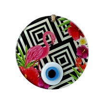 Pembe Flamingolu Çiçekli Nazar Boncuklu 15 Santimetre Çapında Duvar Süsü - 90157466969131000f