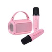 Pembe Kablosuz Bluetooth Hoparlör Mikrofon Seti, Ev Ktv İçin Çift Mikrofon, 7 Renkli Işıklı, Bt 5.0, 20m Mesafe, 5w Güç - Pembe