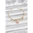 Pembe Kelebek Charmlı Gold Renk Kadın Bileklik Çok Renkli
