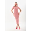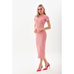 Pembe Kısa Kollu Diz Altı Fitilli Esnek Kalem Elbise - 130 Cm