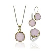 Pembe Kuvars Taşlı Vav Harfi Motifli Otantik Gümüş Kadın Set Rs10127