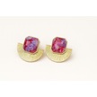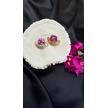 Pembe Mor Taş Detaylı Altın Renkli Modern Küpe Çok Renkli