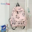 Pembe Ortaokul Ve Lise Öğrencileri İçin Cozy Up Kadın Minimalist Baskılı Sırt Çantası, Graffiti Günlük Sırt Çantası Pembe