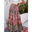 Pembe Paisley Desenli Büzgülü Etekler, Boho Pileli Yazlık Maxi Etekler, Kadın Giyim Pembe