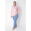 Büyük Beden Battal Pijama Takımı Desenli Uzun Kol Kışlık Kumaş Pembe
