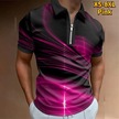 Pembe Rahat Yaka T-shirt Genç Erkek Moda Fermuar Kısa Kollu Tişört Erkek 3d Kırmızı Işık Dalga Baskı T Gömlek Pembe