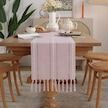 Pembe Rustik Masa Koşucular, El Yapımı Püsküllü, Vintage Dokuma Pamuk Keten Masa Koşucu Uzun Parti Yemek Masası Dekorasyonu İçin 33 220