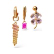Pembe Taş Çiçek Detay Üçlü Çelik Küpe Altın