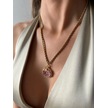 Pembe Taşlı Bombeli Çelik Kolye Çok Renkli