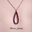 Pembe Taşlı İçi Boş Damla Kolye Rose - Gold - Gümüş