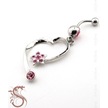 Pembe Taşlı Kalp Yıldız Cerrahi Çelik Göbek Piercing P424 Pembe