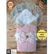 Pembe Triko Örgü Kız Bebek Batttaniyesi Kundağı Kalın Dantelli Yenidoğan Hastane Çıkışı Hediyelik Somon
