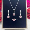 Pembe Yuvarlak Taşlı Kadın 3'lü Set 925 Ayar Gümüş Zirkon Taşlı Gümüş
