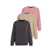 Pembe/füme/bej Bisiklet Yaka Basic 3'lü Paket Sweatshirt Mg2595 Çok Renkli
