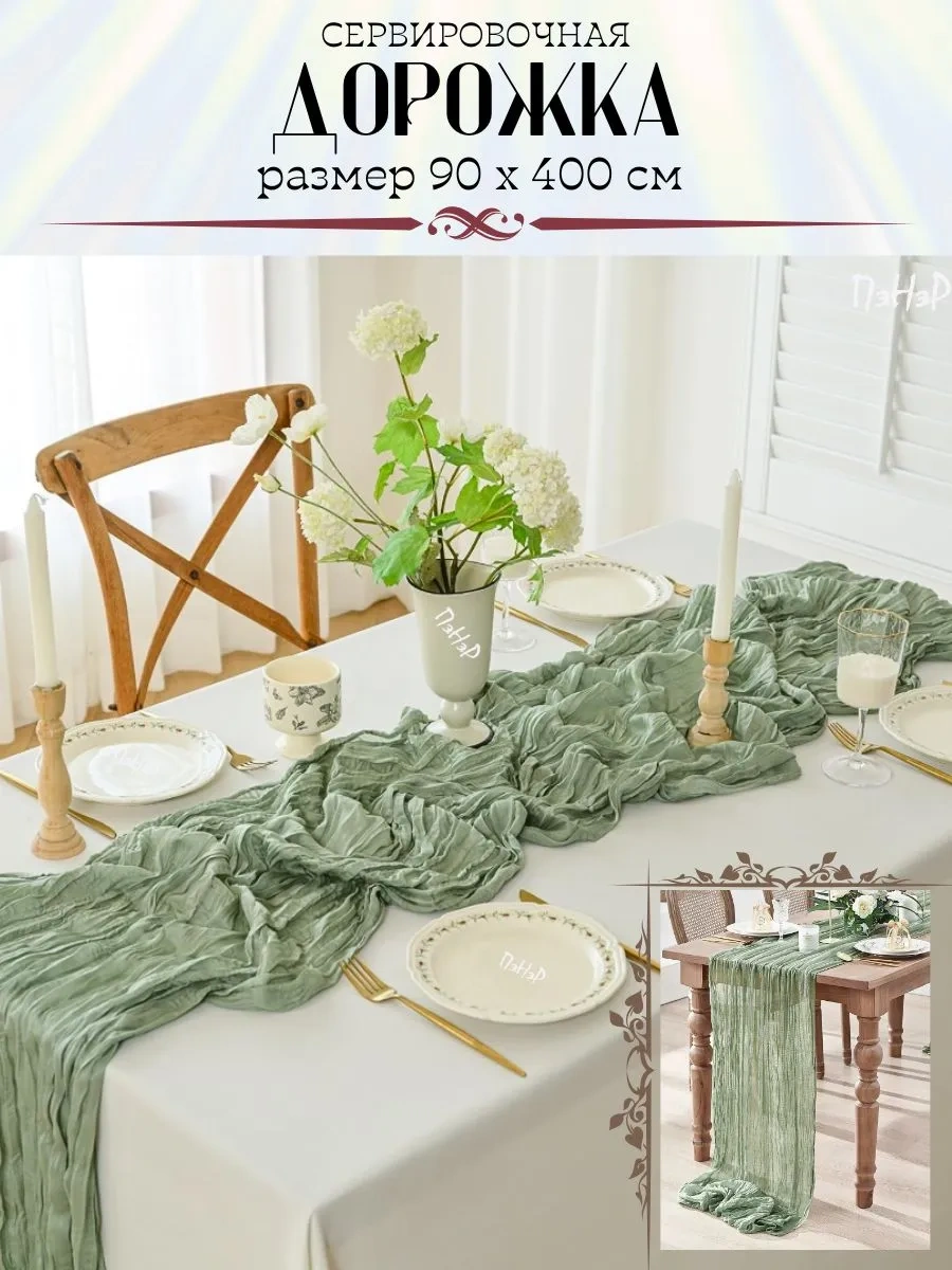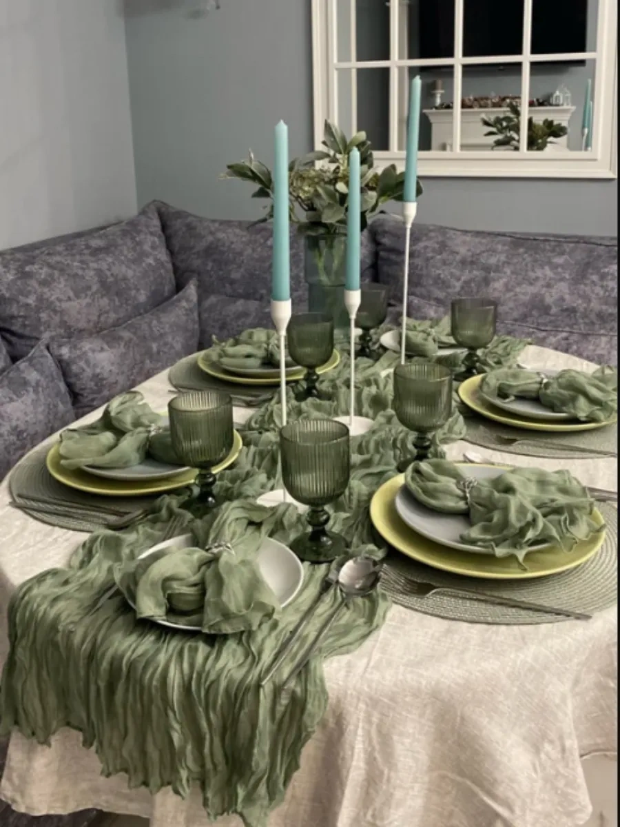Pener 4 M Kumaş Masa Örtüsü, Masa İçin Paspas, Düğün Dekorasyonu 182497371 Yeşil Duman
