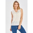 Peraluna Dantel Detaylı Beyaz Renk Kolsuz Kadın Triko Bluz-Beyaz