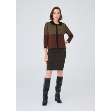 Peraluna Geometrik Desen Jakarlı Kısa Kadın Triko Etek Siyah Siyah