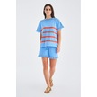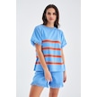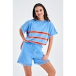 Peraluna Hannah Blouse & Shorts Pamuklu Yazlık Kadın Triko Şort T Mavi