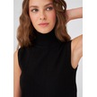 Peraluna Kadın Balıkçı Yaka Dar Kalıp Kolsuz Bluz Siyah-Siyah